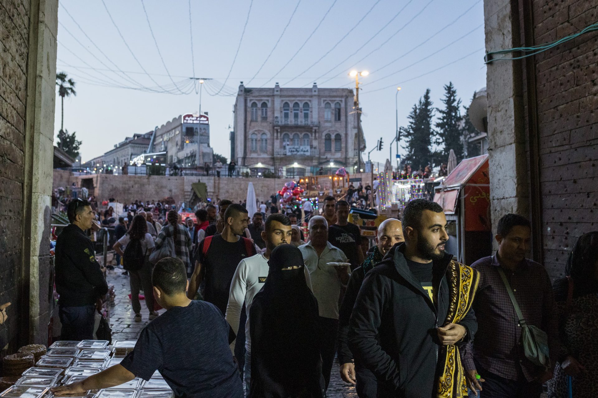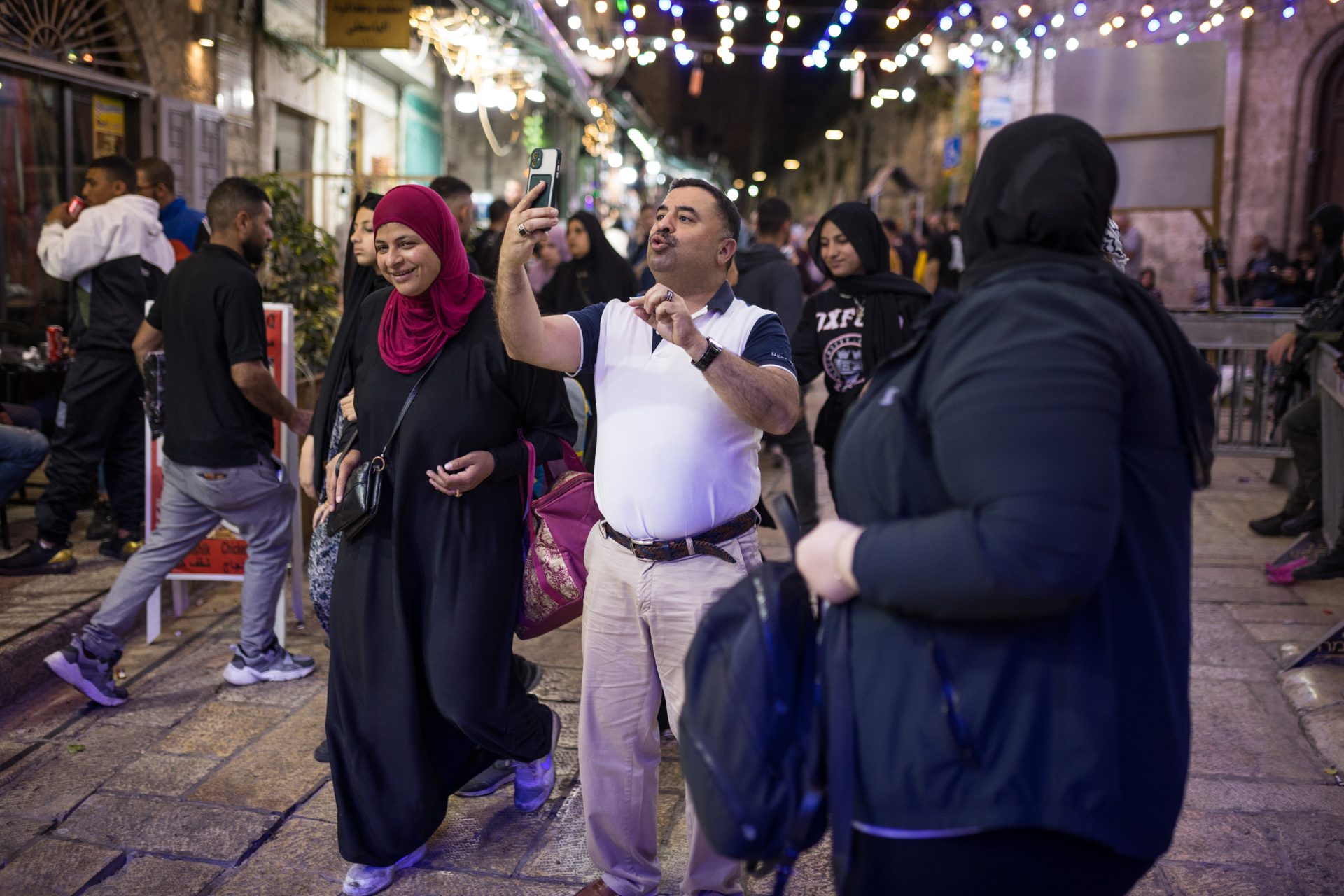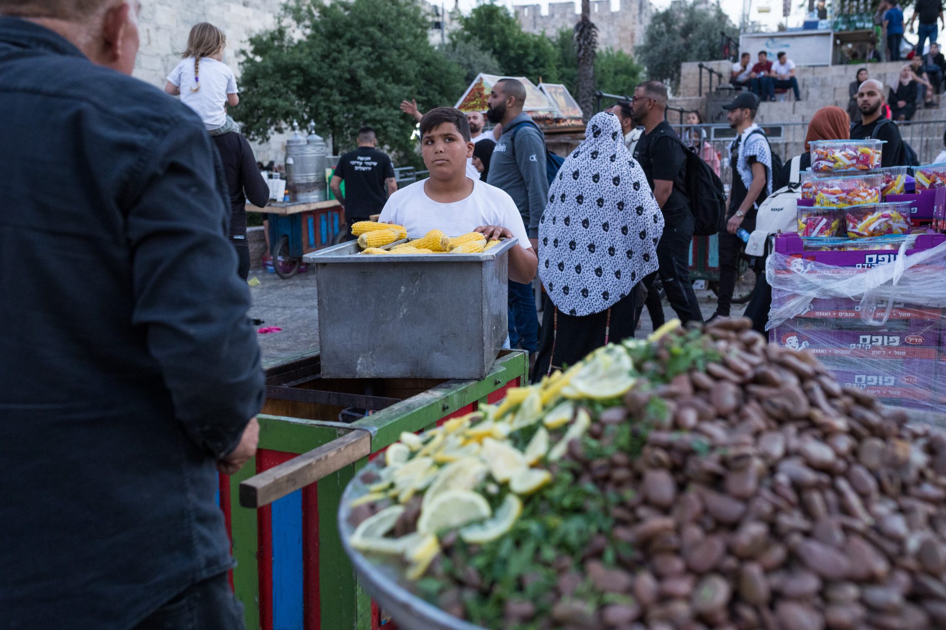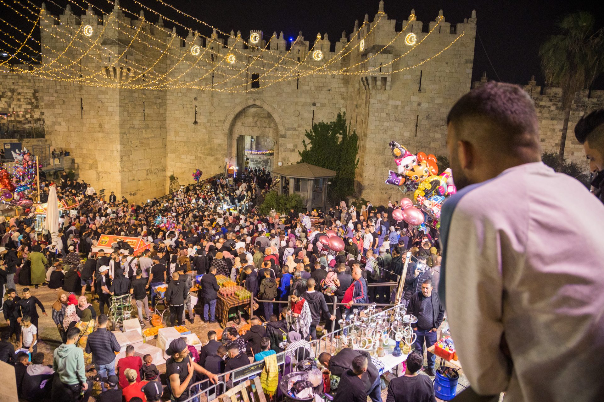 As it’s still during Ramadan, the event begins close to sundown, or to be more exact: close to breaking the daily fast (the Iftar meal). The Damascus Gate area, the heart of Palestinian Jerusalem, was filled with dozens of vendors selling everything imaginable: from toys to shish kebabs, green almonds to a bubble maker. The sun went down slowly as people began to flow into the walls of the old city. Swarms of people – elders helped by their canes, youngsters on electric bikes, women carrying their kids and teens laughing, each with his or her own goals: participating, taking selfies or praying.