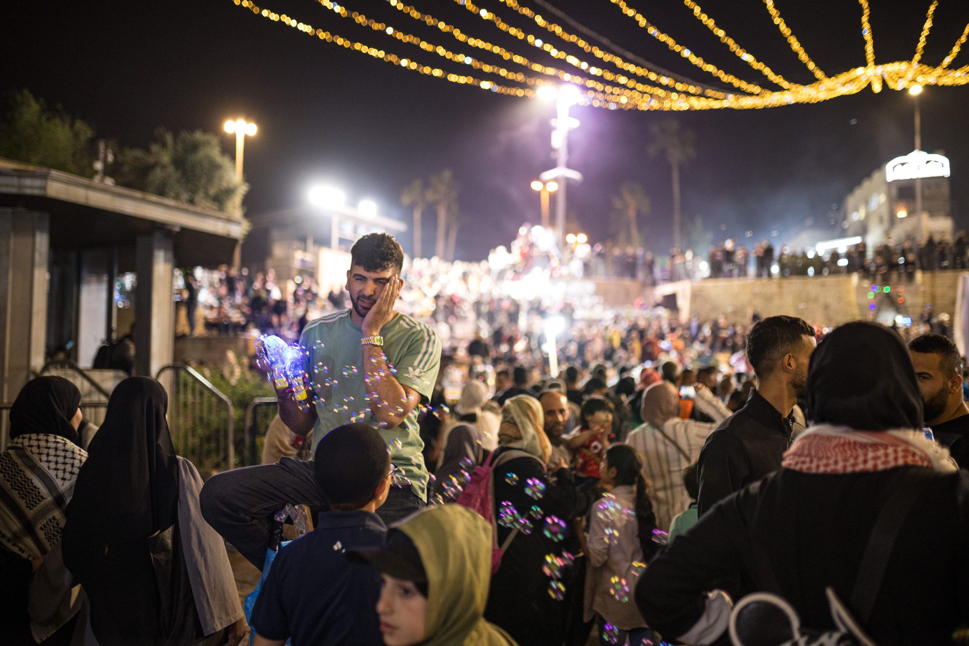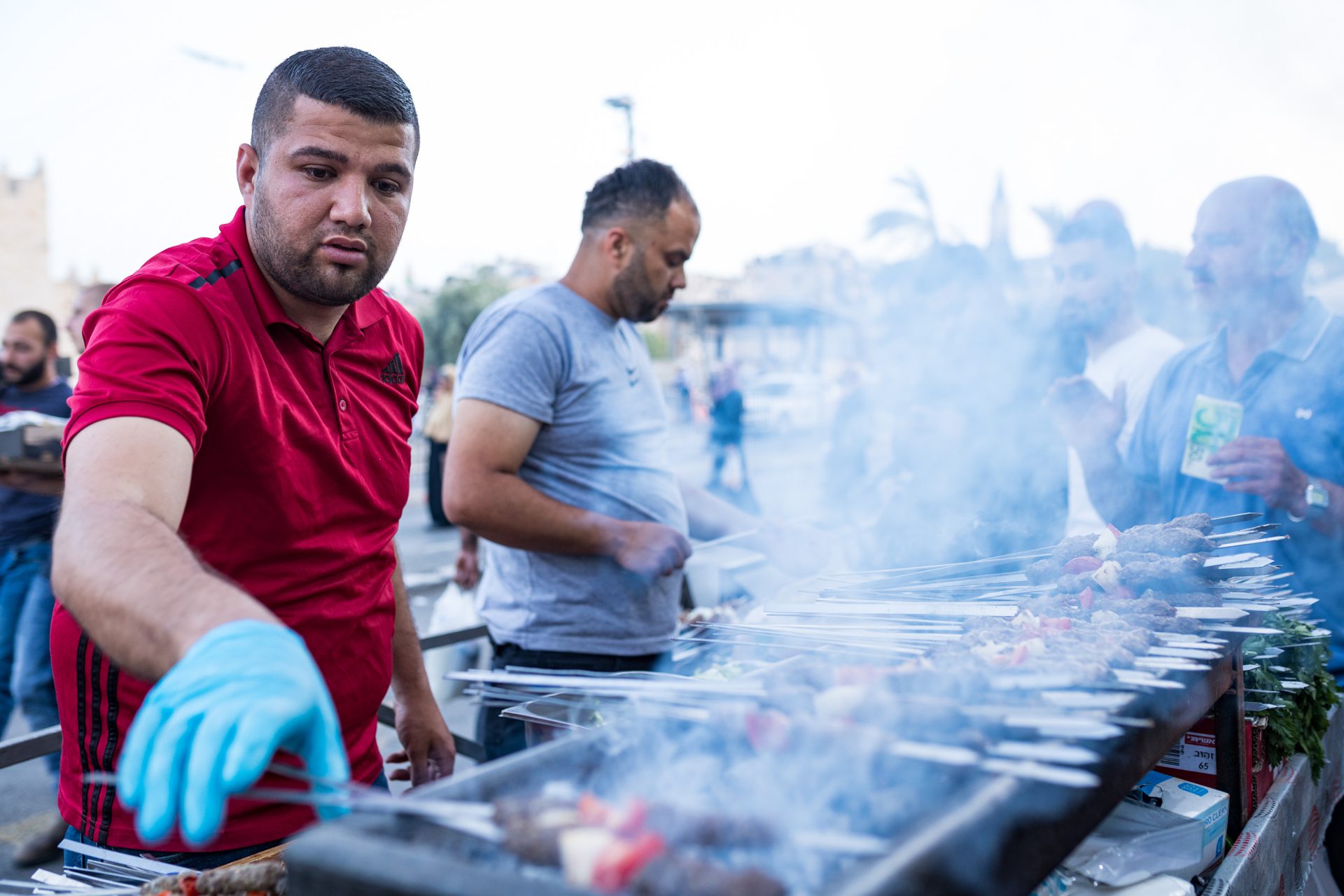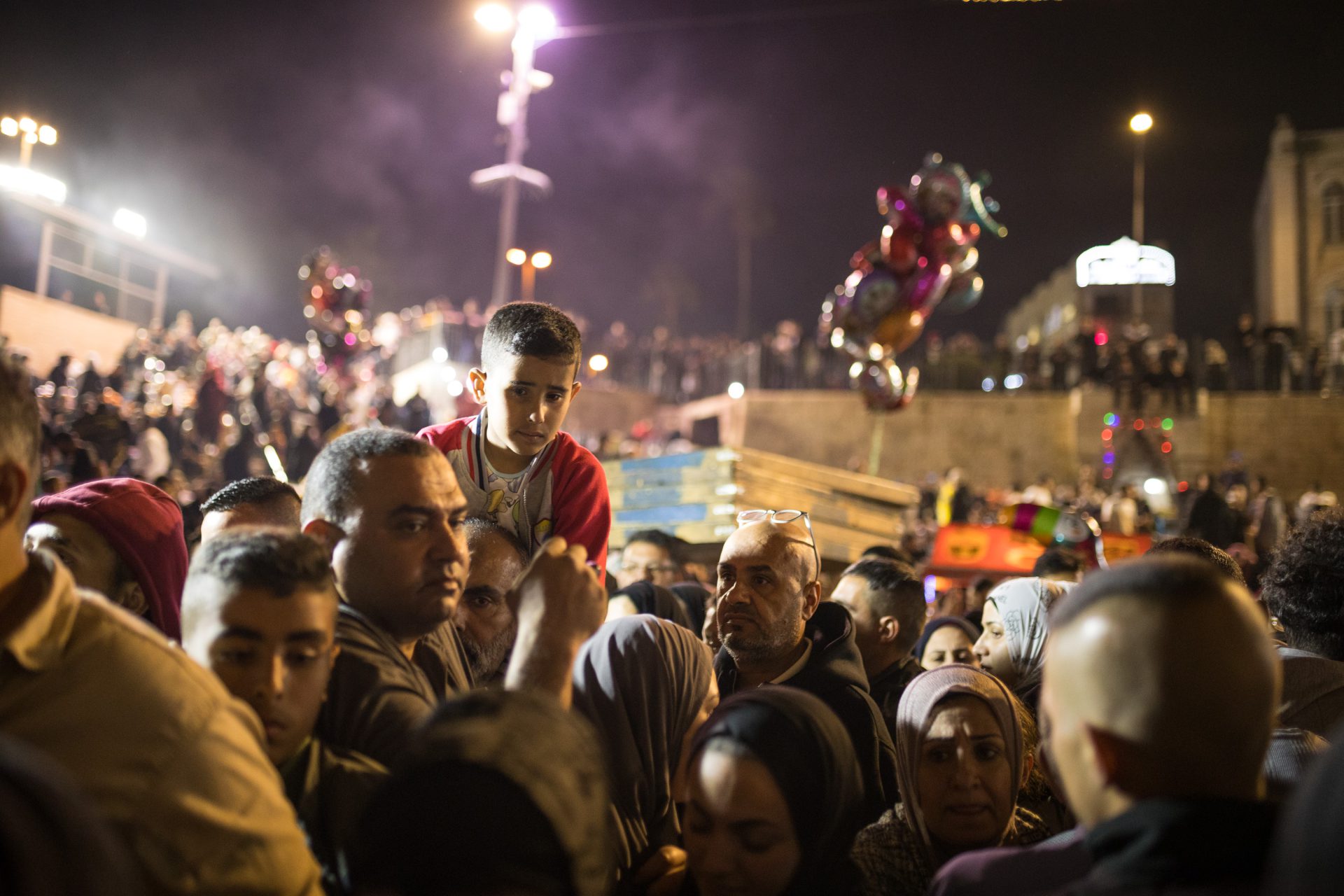 As it’s still during Ramadan, the event begins close to sundown, or to be more exact: close to breaking the daily fast (the Iftar meal). The Damascus Gate area, the heart of Palestinian Jerusalem, was filled with dozens of vendors selling everything imaginable: from toys to shish kebabs, green almonds to a bubble maker. The sun went down slowly as people began to flow into the walls of the old city. Swarms of people – elders helped by their canes, youngsters on electric bikes, women carrying their kids and teens laughing, each with his or her own goals: participating, taking selfies or praying.
