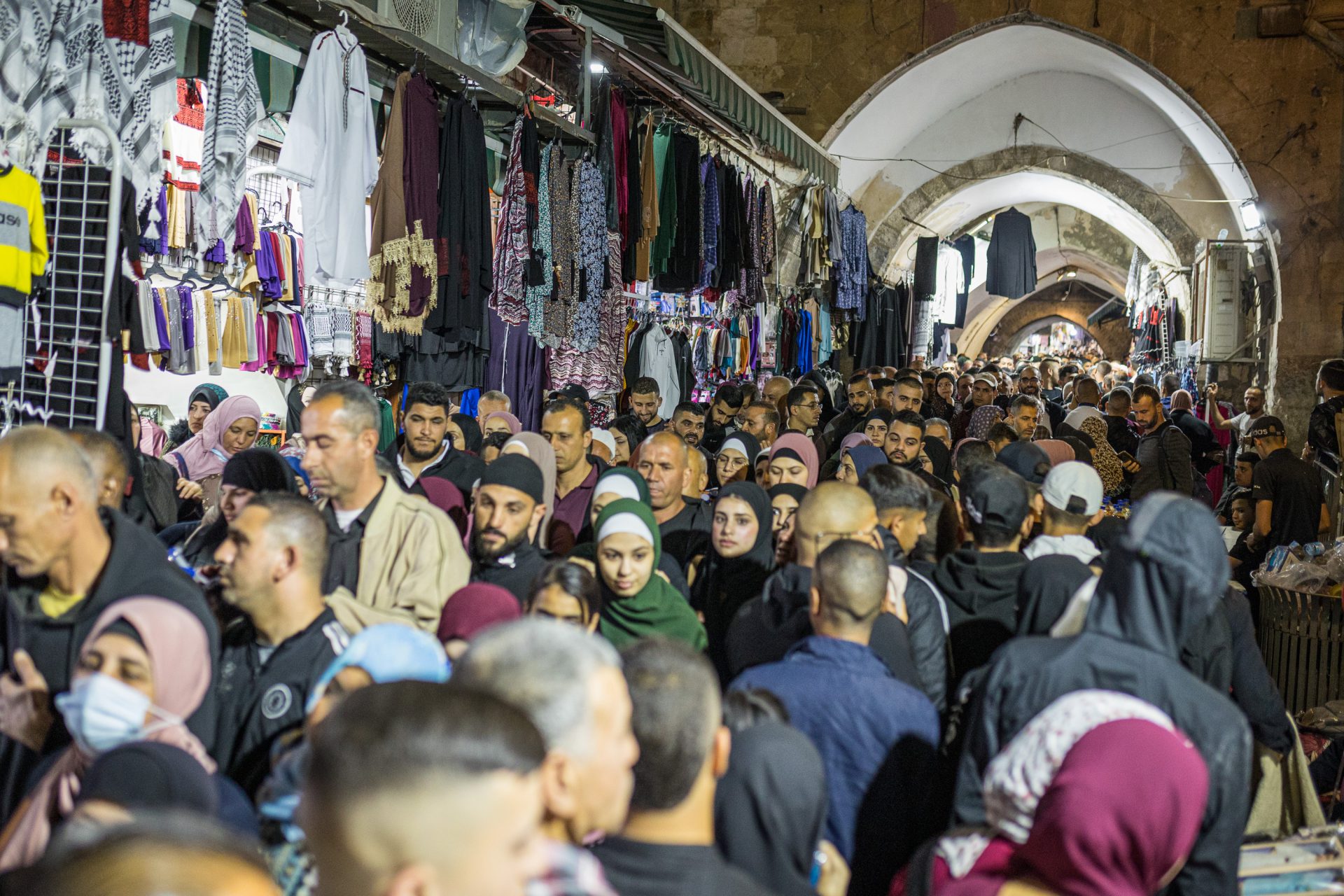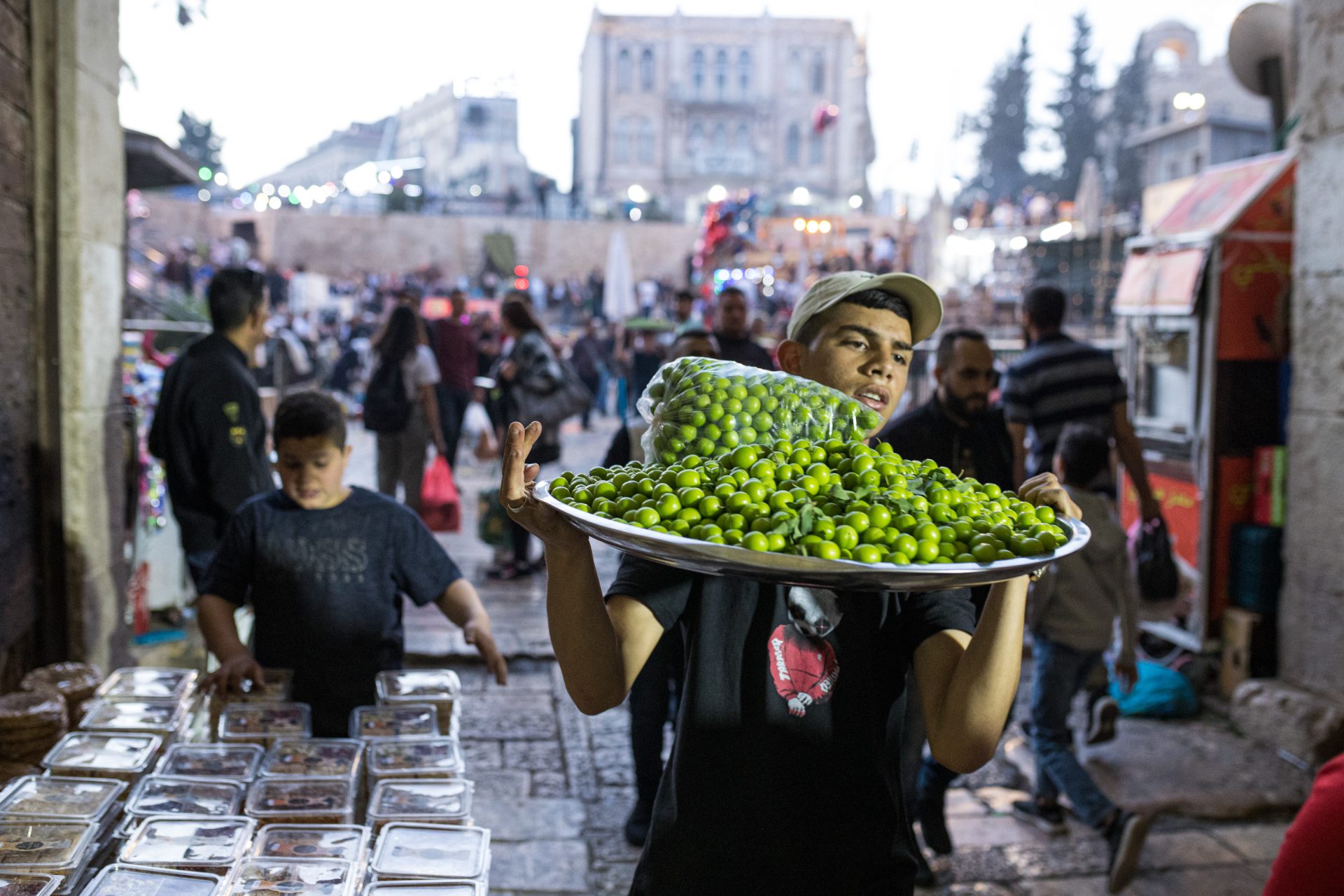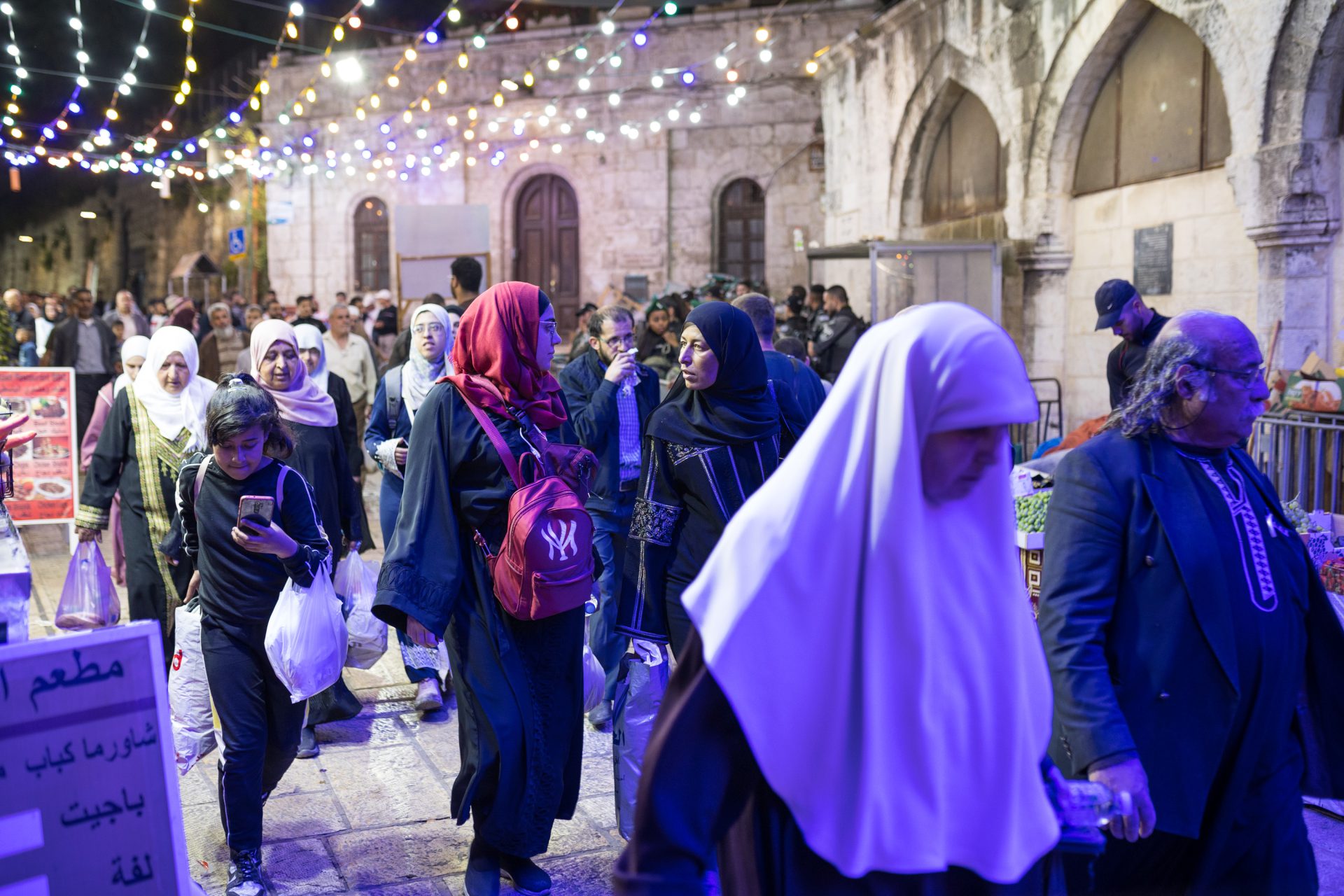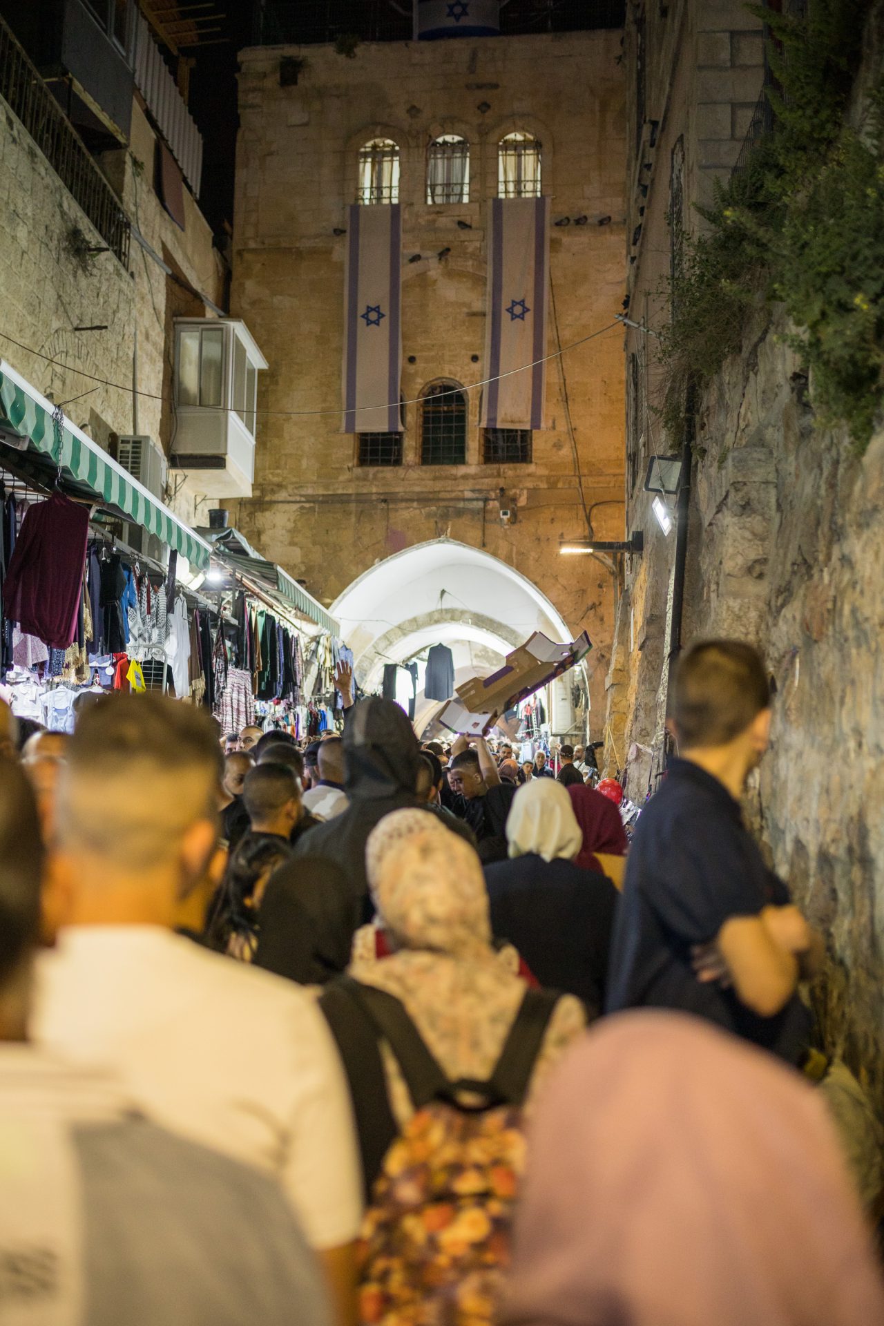 As it’s still during Ramadan, the event begins close to sundown, or to be more exact: close to breaking the daily fast (the Iftar meal). The Damascus Gate area, the heart of Palestinian Jerusalem, was filled with dozens of vendors selling everything imaginable: from toys to shish kebabs, green almonds to a bubble maker. The sun went down slowly as people began to flow into the walls of the old city. Swarms of people – elders helped by their canes, youngsters on electric bikes, women carrying their kids and teens laughing, each with his or her own goals: participating, taking selfies or praying.