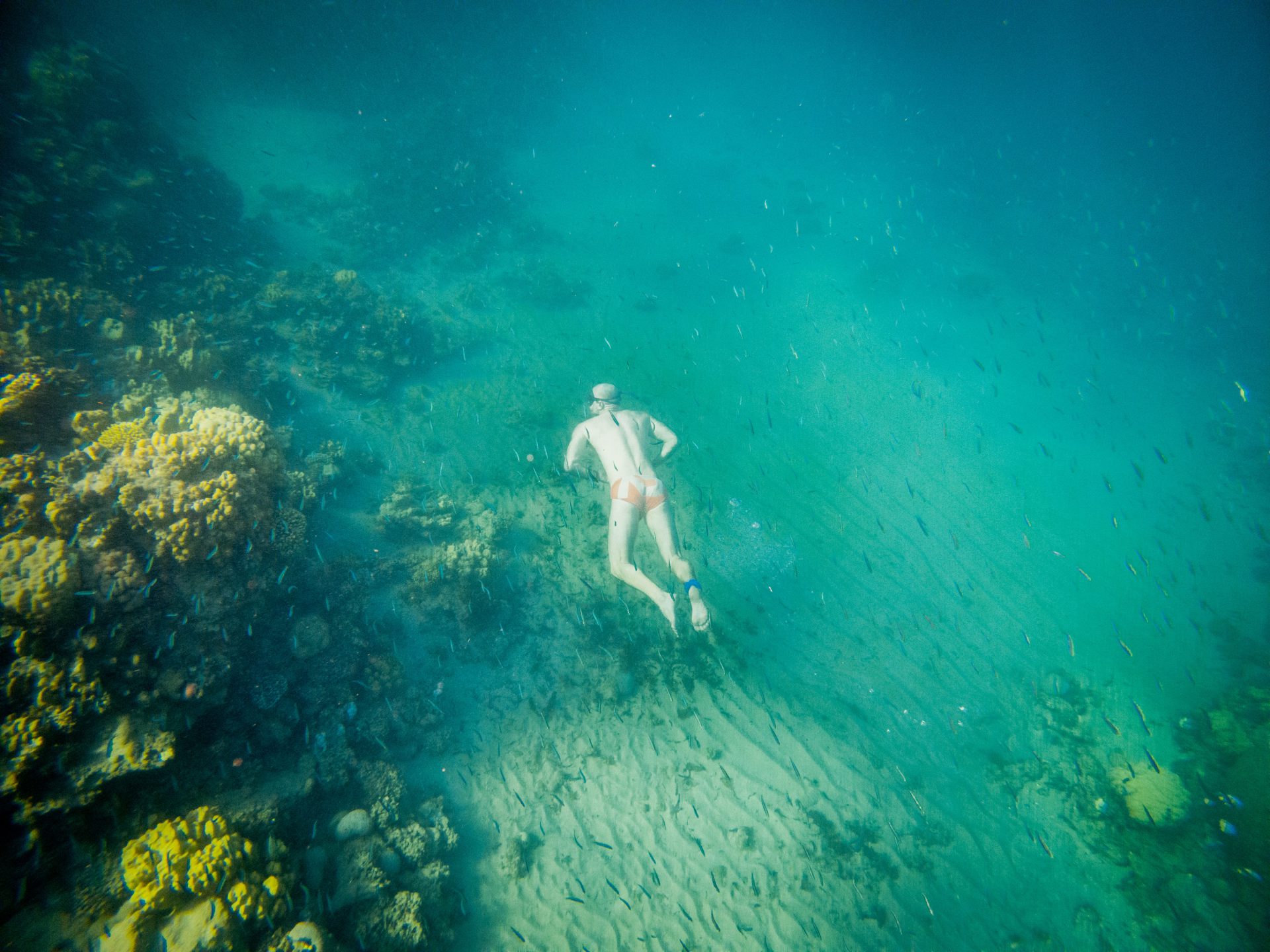 Playing around in the clear waters of the Red Sea in Sinai with a friend who is a former freediving instructor. All photos were shot with a GoPro. Don’t forget: it’s the photographer that matters more than the camera. Even when shooting with the GoPro, which is a very limited tool, note the variety and different types of shots in order to create an interesting and diverse sequence.
