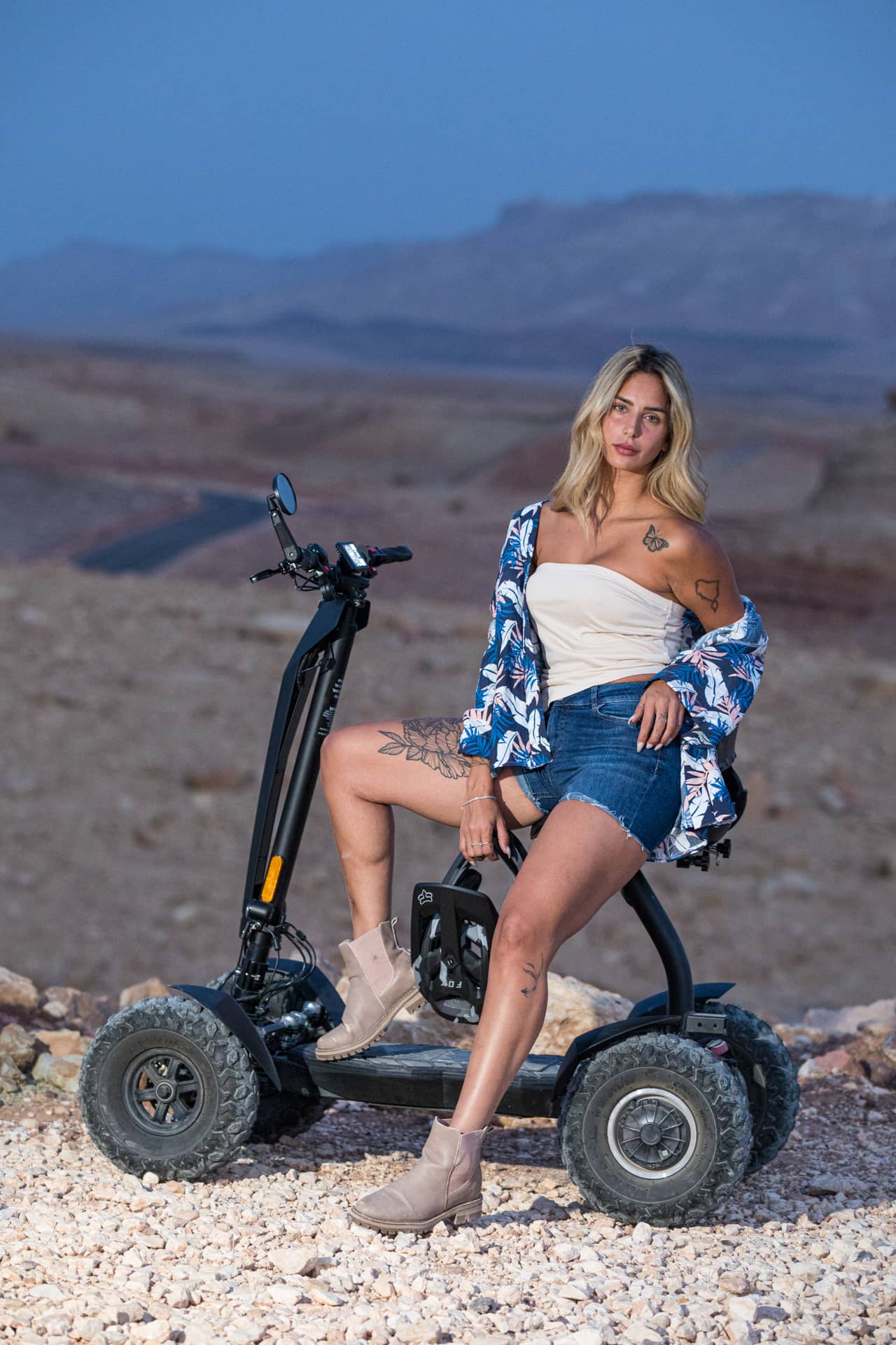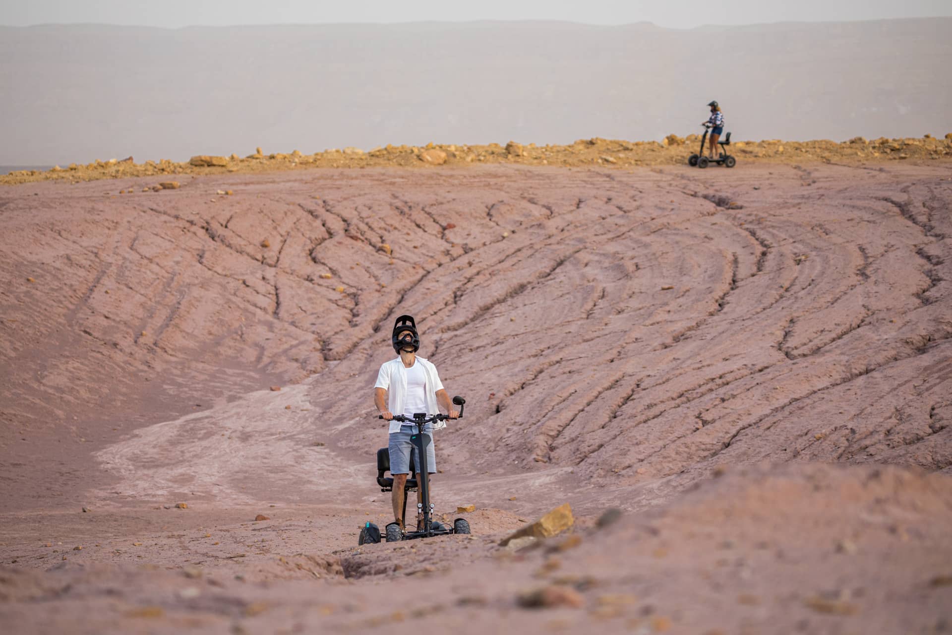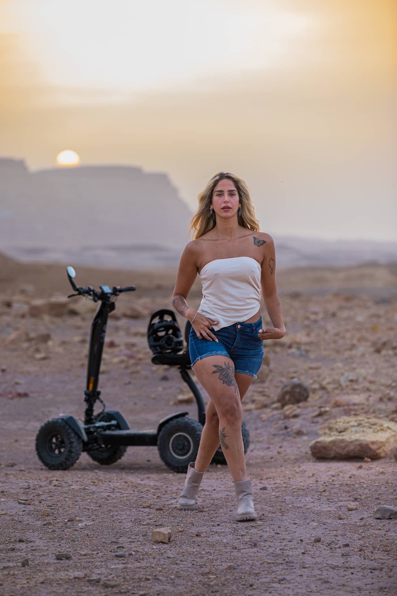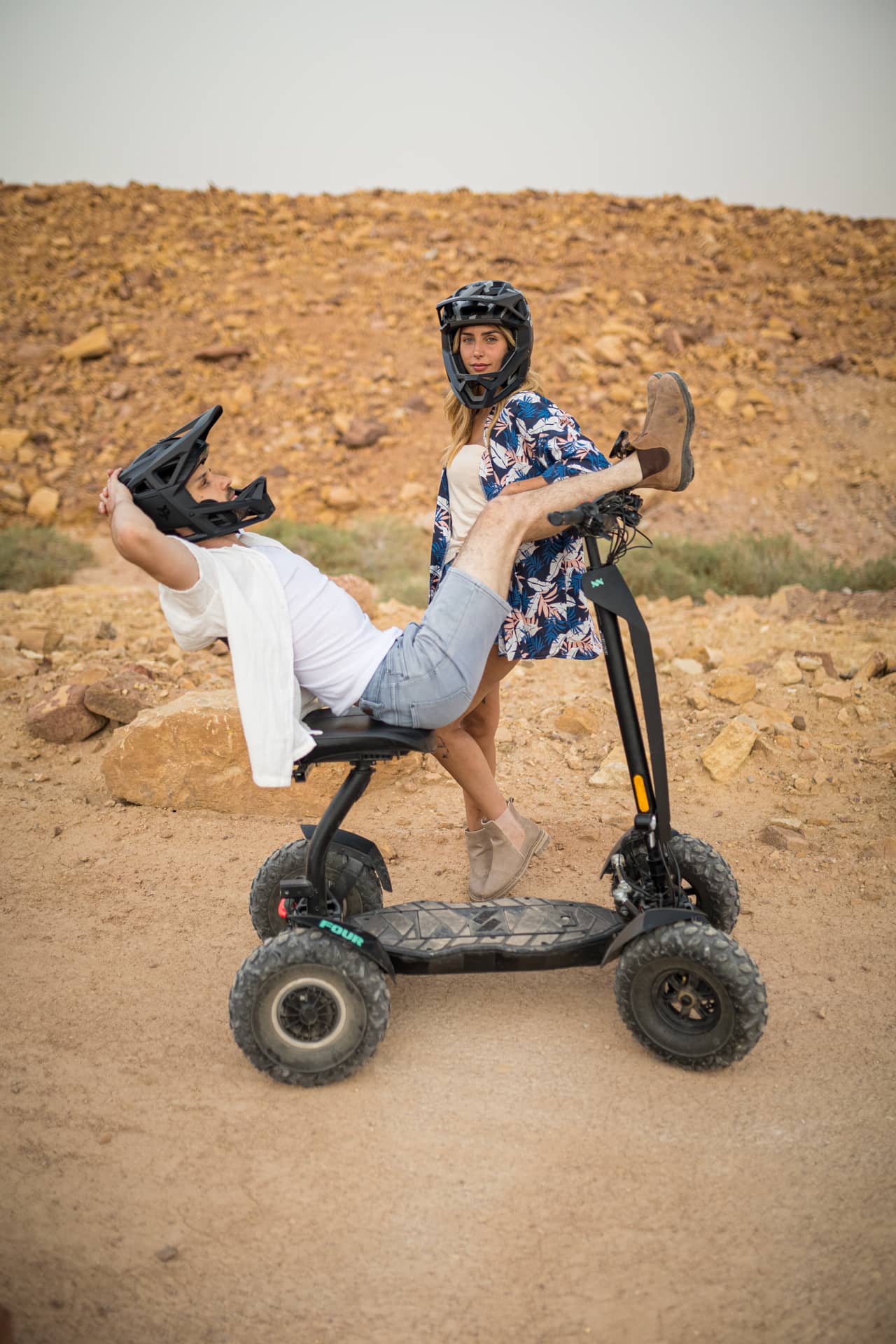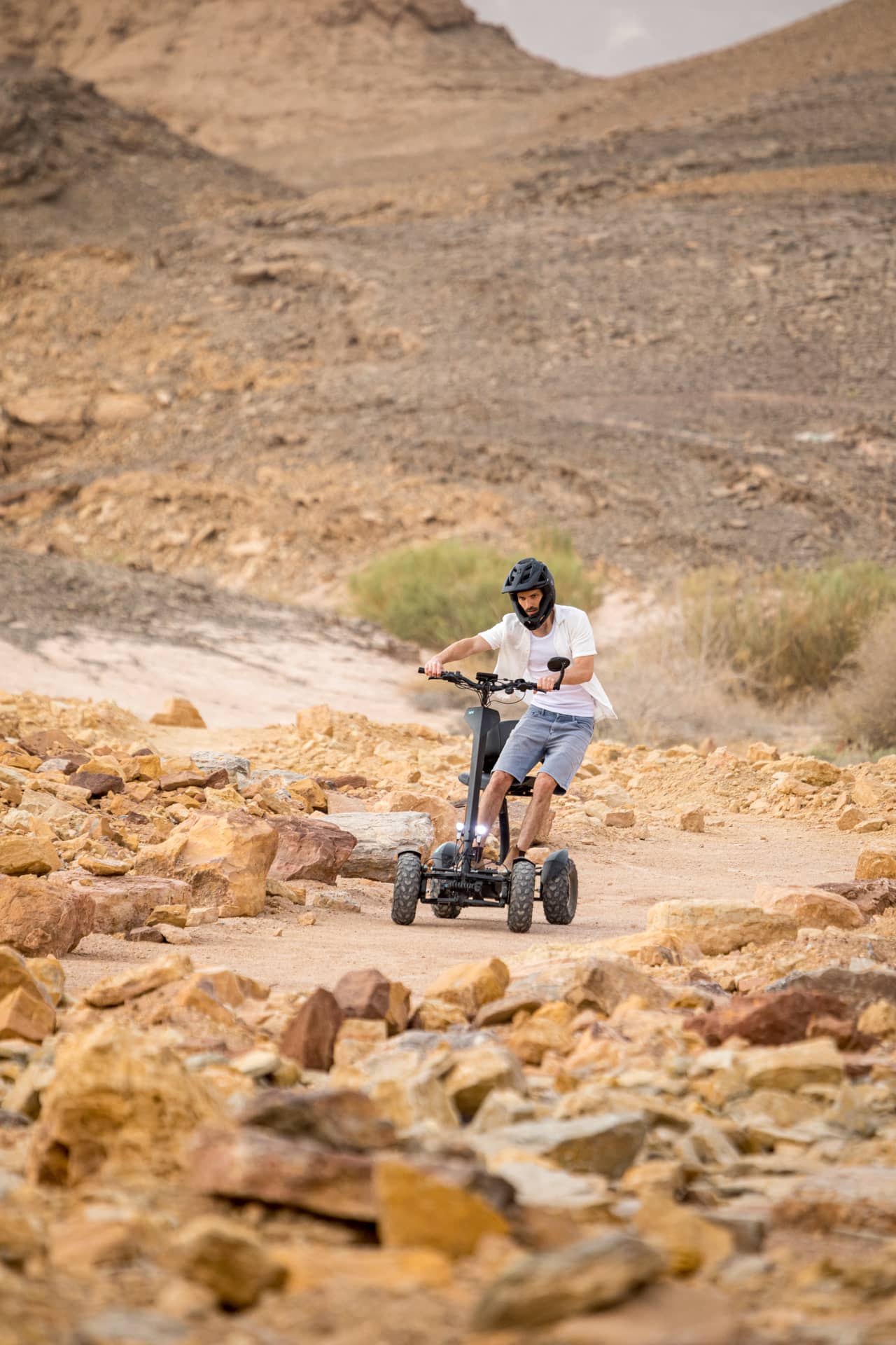 I recently had the chance to use those skills on another successful collaboration with Yair Younger, the VP of sales at Mayer Group, that have recently begun selling the phenomenal Mia Four quadboard. We wanted to capture its essence in two distinct and captivating locations: the awe-inspiring Ramon Crater, renowned for its striking desert landscapes; and amidst the lush embrace of the Ella Valley’s thick pine forest. The contrast between the barrenness of the desert and the verdant beauty of the forest helped us create two very different bodies of work in one day.